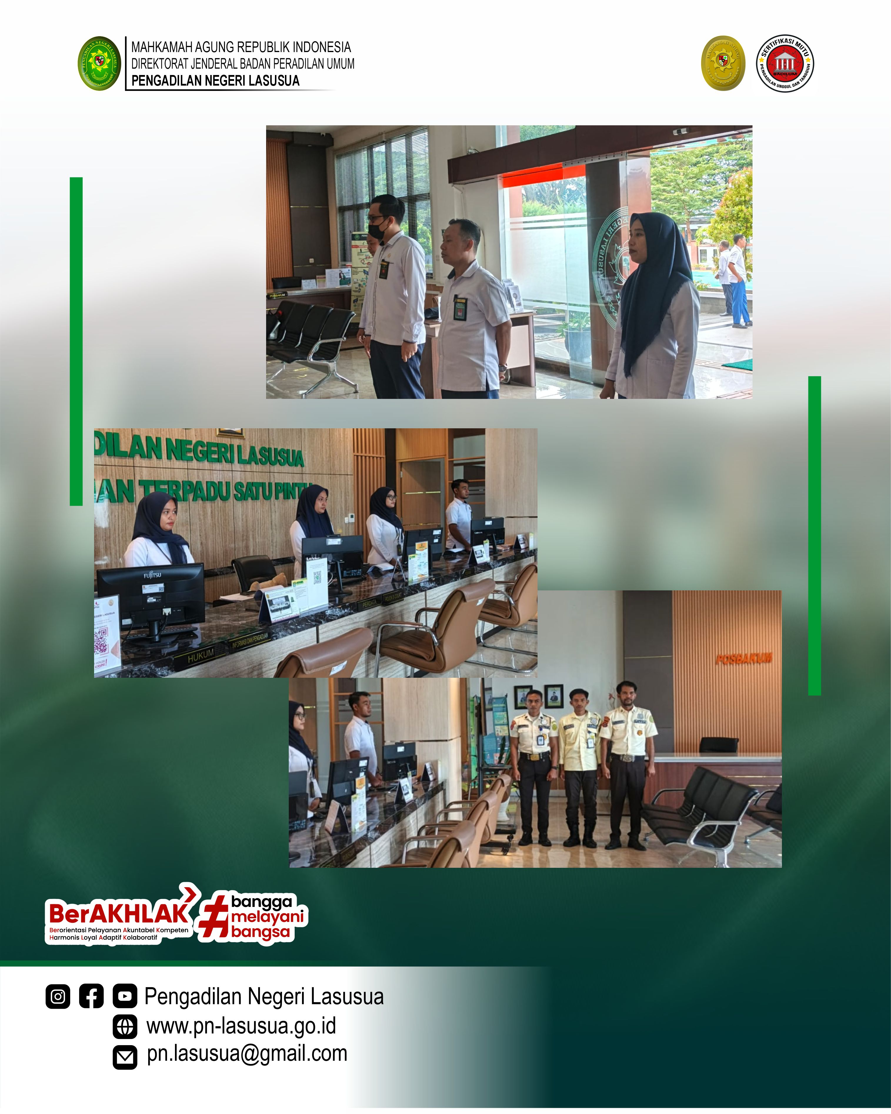 Lasusua, 6 April 2026 – Dalam rangka meningkatkan integritas dan kualitas pelayanan, Pengadilan Negeri Lasusua melaksanakan kegiatan briefing bagi Petugas Pelayanan Terpadu Satu Pintu (PTSP) dan Petugas Keamanan (Satpam) yang dilaksanakan setelah apel pagi, Senin 6 April 2026.