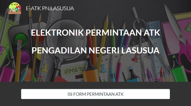 Inovasi elektronik permintaan barang ATK secara online atau yang biasa disebut e-ATK adalah aplikasi yang digunakan untuk melakukan permintaan barang ATK secara elektronik/online. Aplikasi ini dibuat untuk menggantikan system permintaan barang ATK yang dilakukan secara manual (hakim dan pegawai bertemu langsung dengan petugas bagian umum untuk melakukan order ATK). Tujuan e-ATK yaitu untuk memberikan kemudahan kepada pengguna barang (Hakim & Pegawai) dalam melakukan order ATK yang menjadi kebutuhannya secara online (tanpa harus bertemu fisik dengan petugas bagian umum) sehingga lebih efektif dan efisien kkhususnya dalam masa pandemi covid-19. Aplikasi ini digunakan hanya untuk kalangan internal Pengadilan Negeri Lasusua.